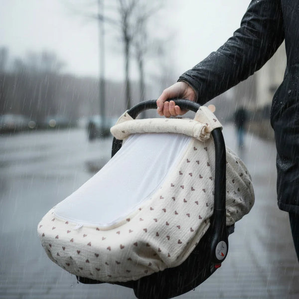 Give your baby a calm, comfy ride wherever you go. Our Baby Car Seat Cover is designed to protect your little one from wind, dust, and overstimulation while keeping airflow just right for all-season comfort.